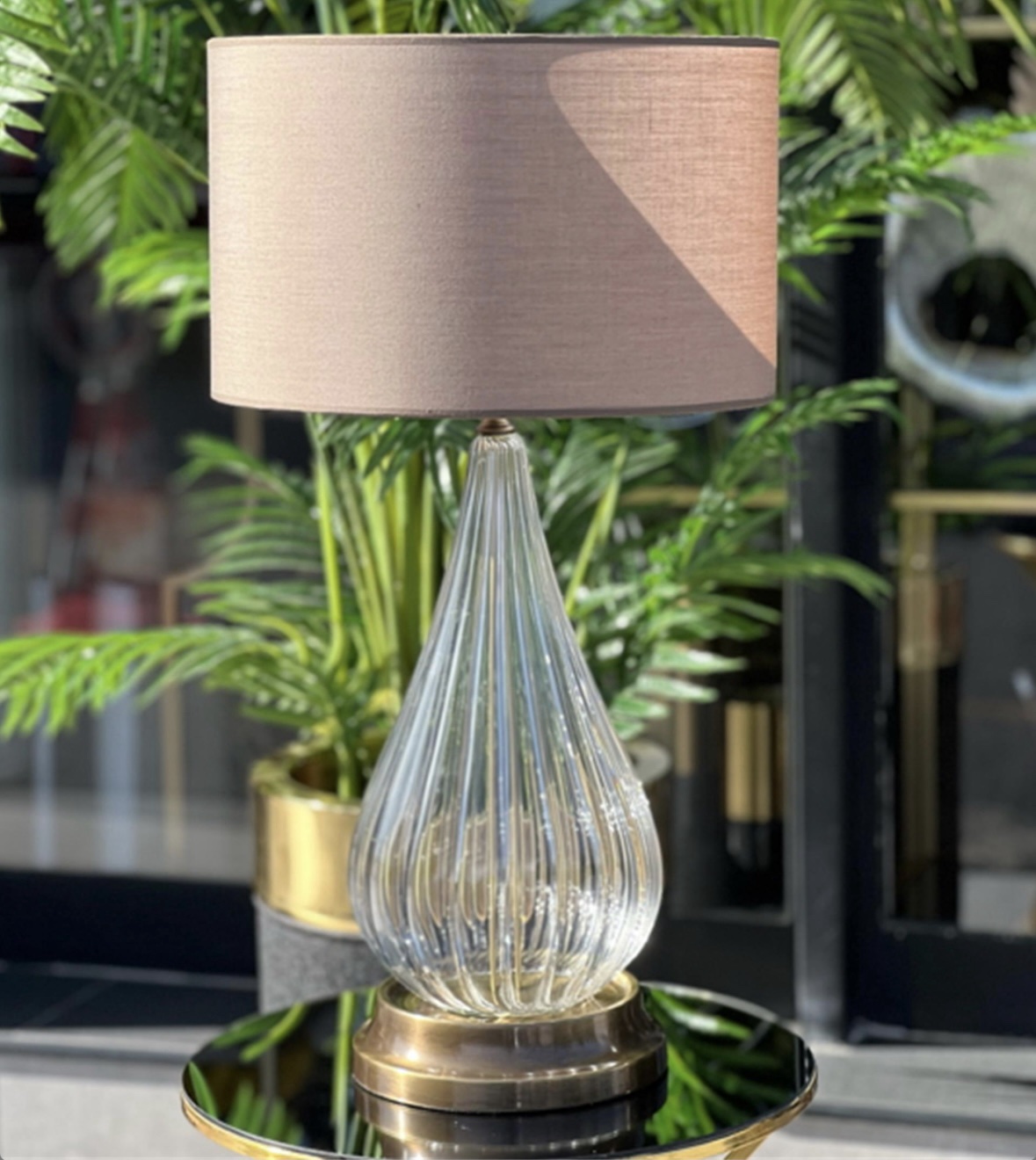 ESKİTME ŞEFFAF ÇİZGİLİ 2 KAT CAM ABAJUR