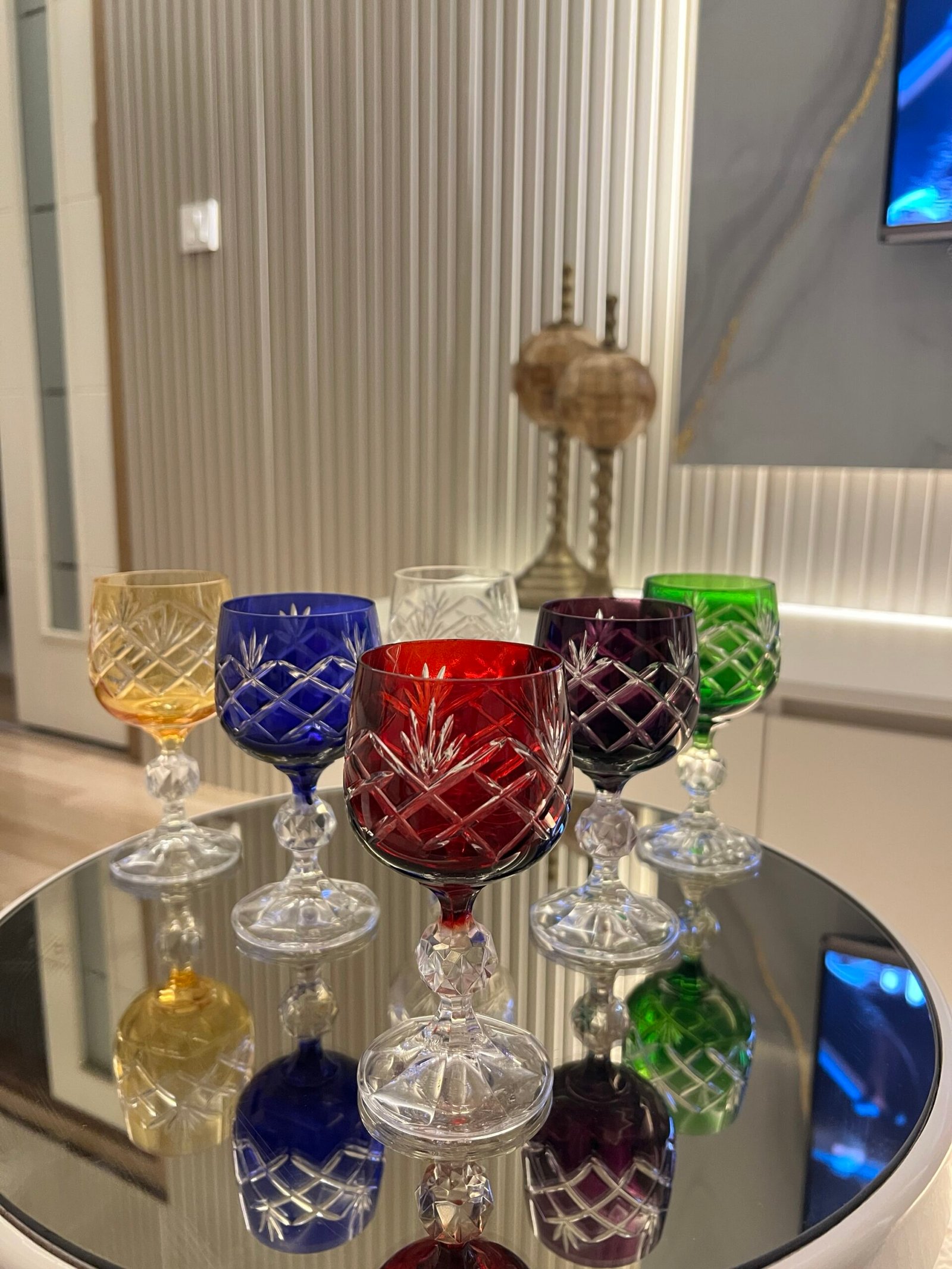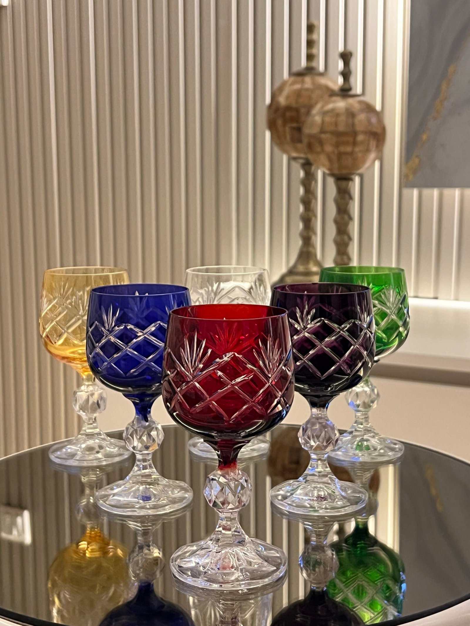 6 Kişilik Kahve Yanı Bardak Renkli Kareli