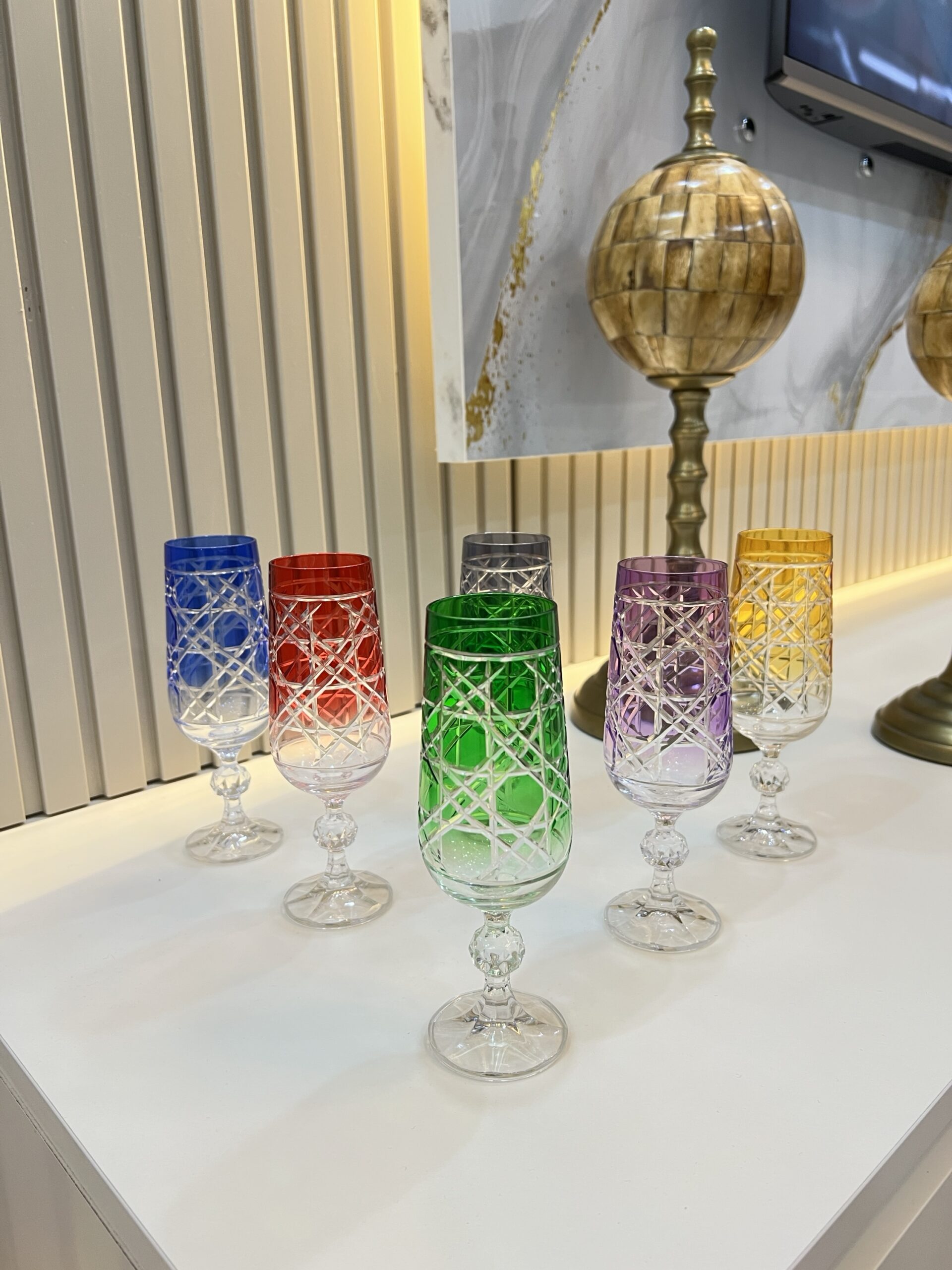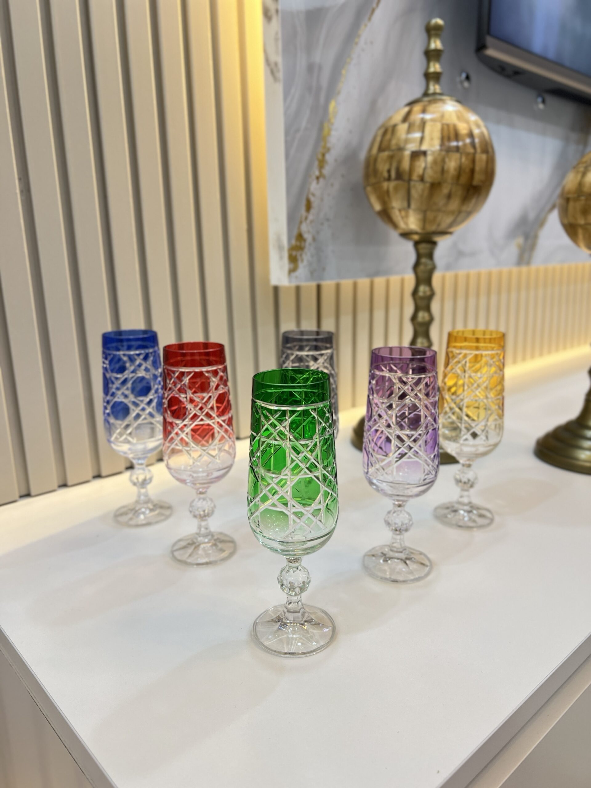 6 Kişilik BOHEMİA Kesme Detay Kahve Yanı Bardağı*RENGARENK 001