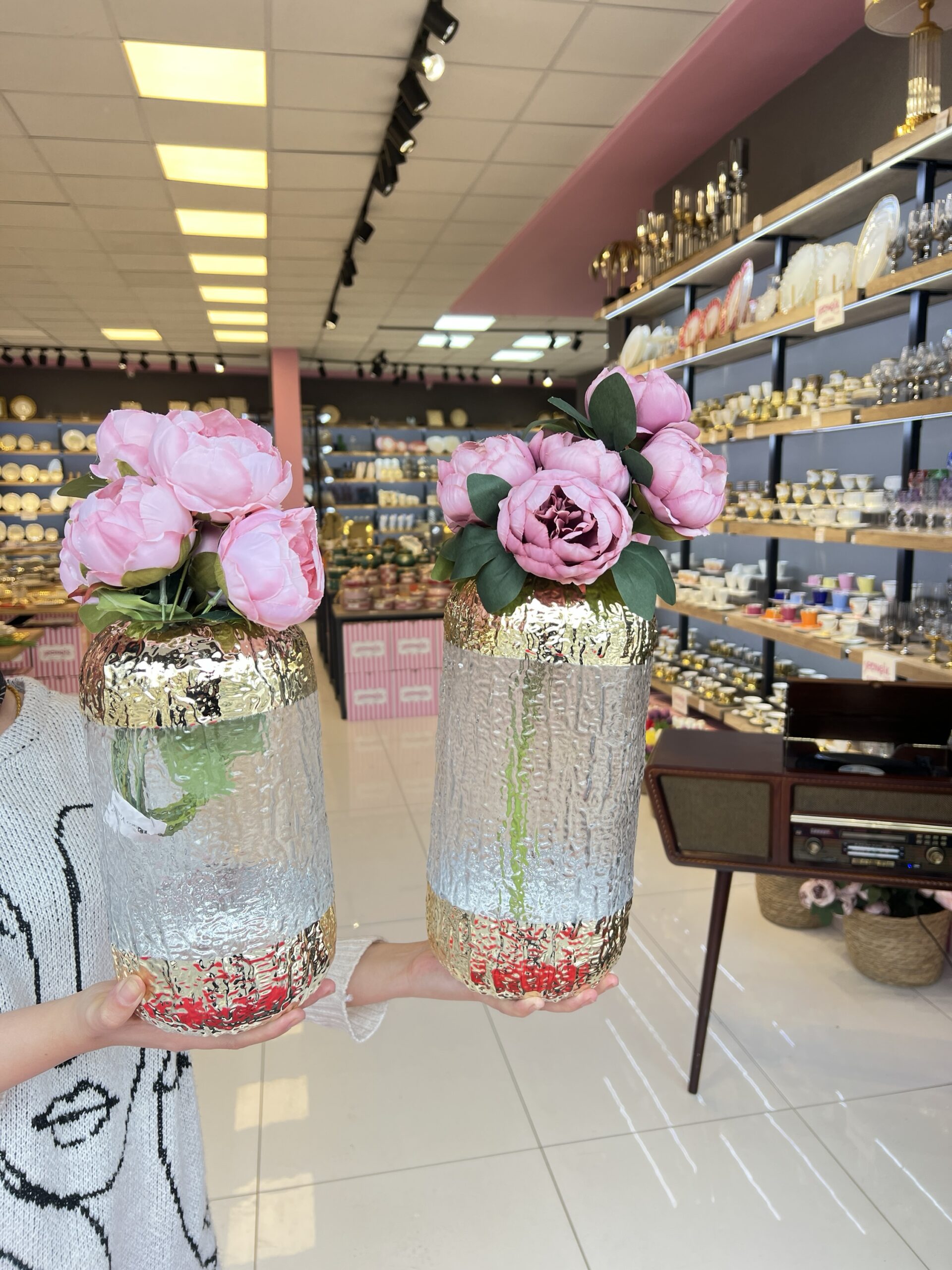 2’Lİ **Bulanık Model İthal Vazo Altın 13x27cm ve 15×34