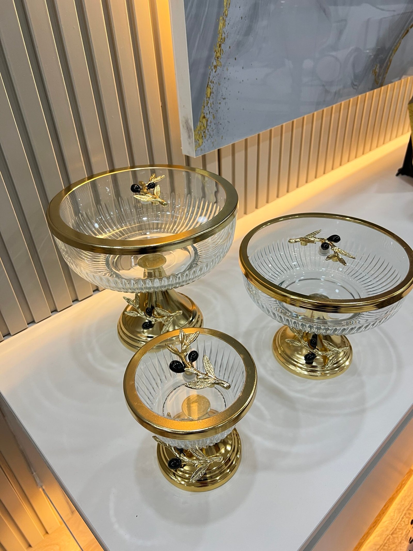 Zeytin Detay 3 Boy Sunumluk 23 cm – 17cm – 12 cm **GOLD
