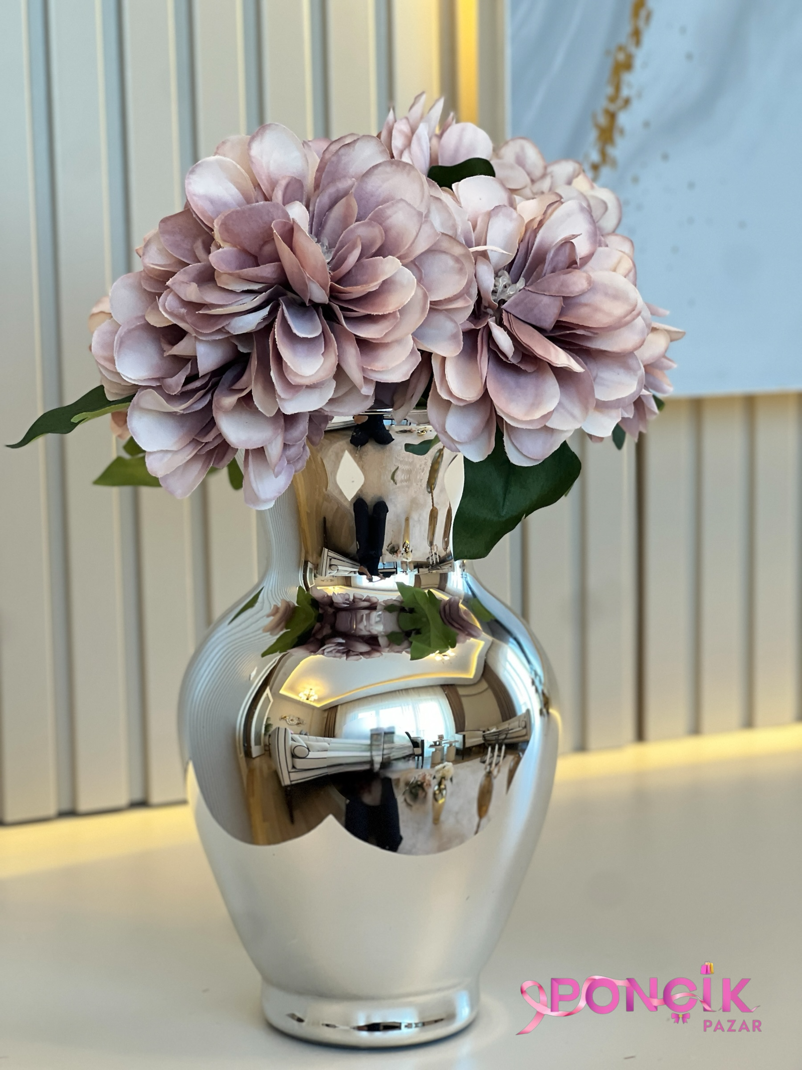 Gümüş kaplama vazo ve 1 Demet çiçek