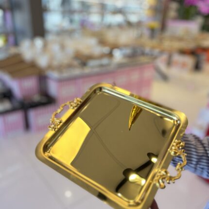 6 Adet Çift Tutmalı Gold Renk Tepsi