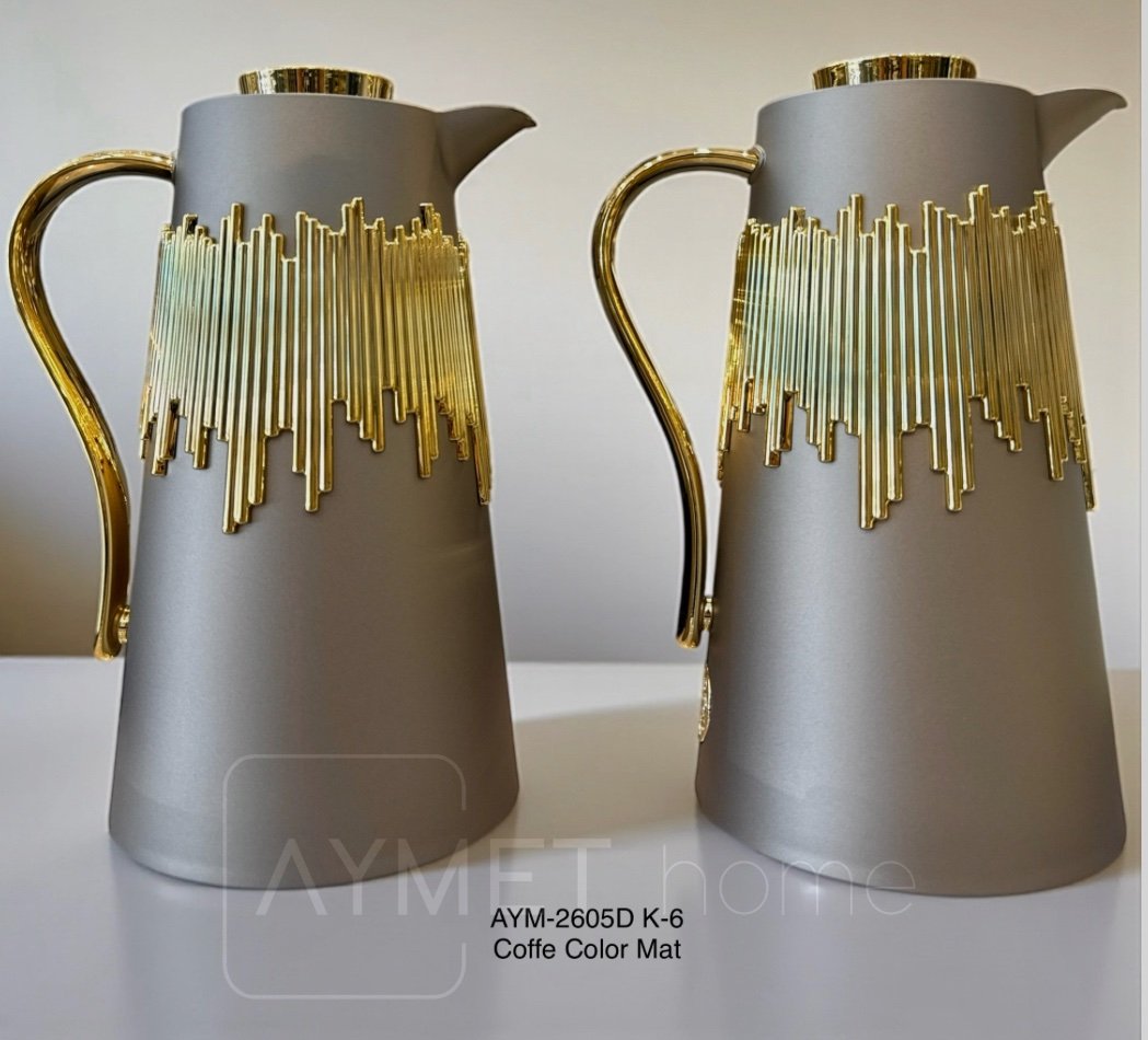 2 Li Gold İthal Termos Seti Gold detaylı -cappuccino