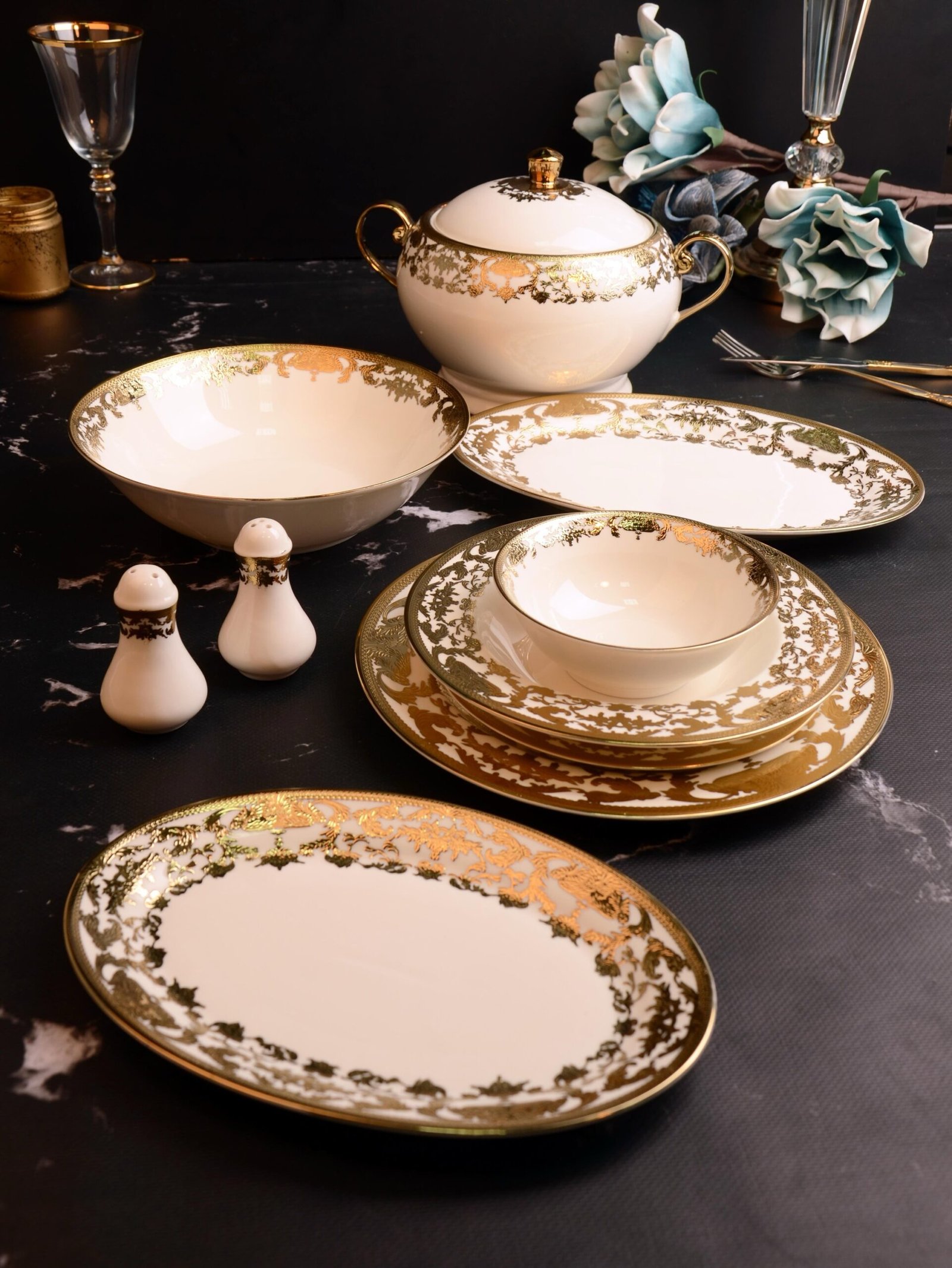60 PARÇA KÖSEM SULTAN LUXURY PORSELEN YEMEK TAKIMI **12 KİŞİLİK