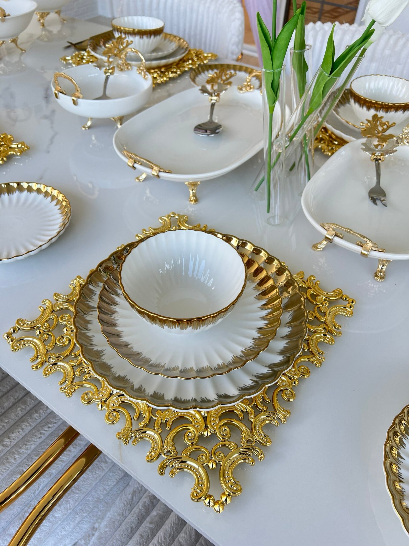 ✨ 2 ADET ZAMAK AYAKLI PORSELEN SUNUMLUK
