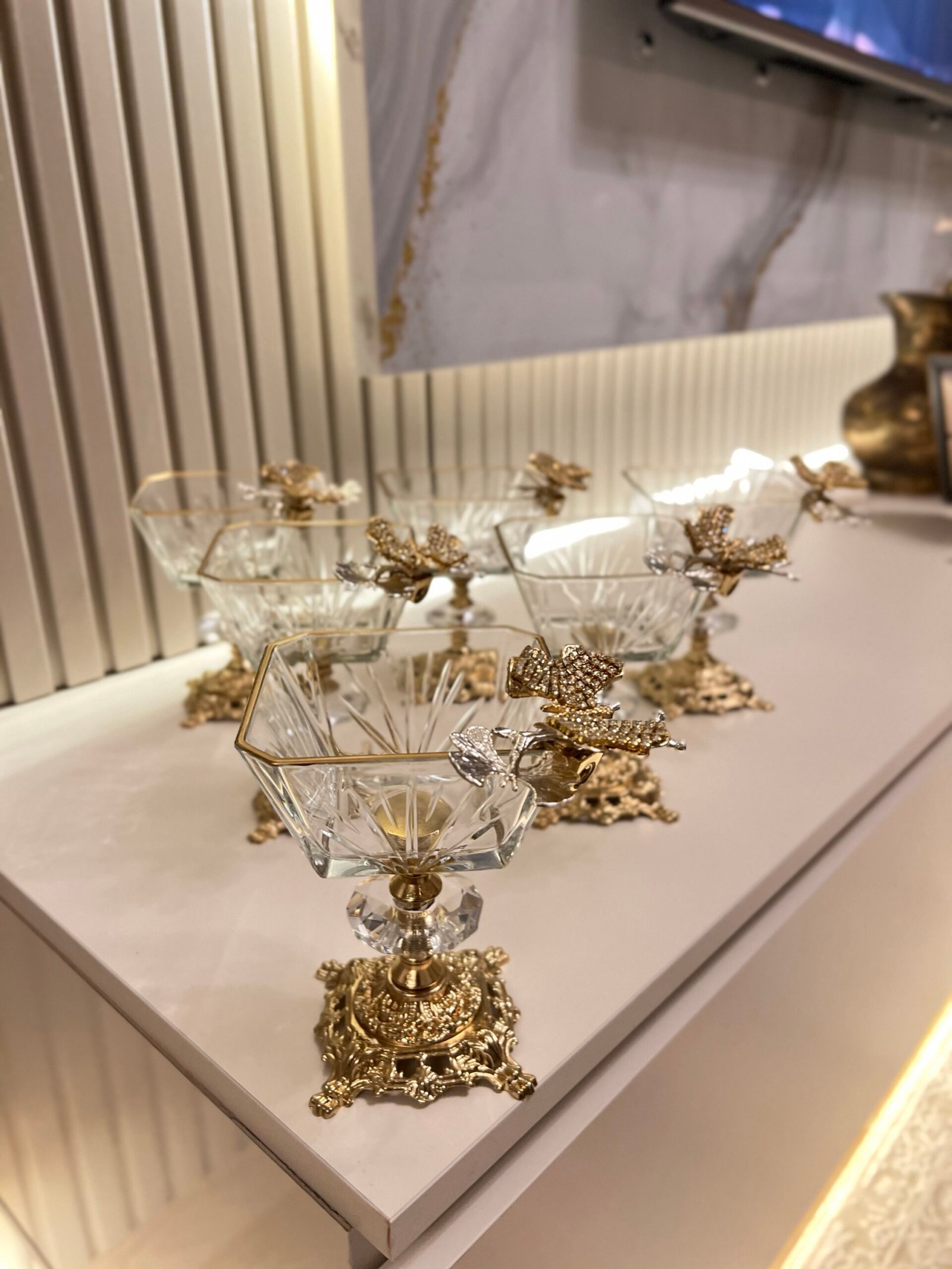 Zamak Ayaklı Gold Dondurmalık & İkramlık **Kelebek Detay*6 ADET